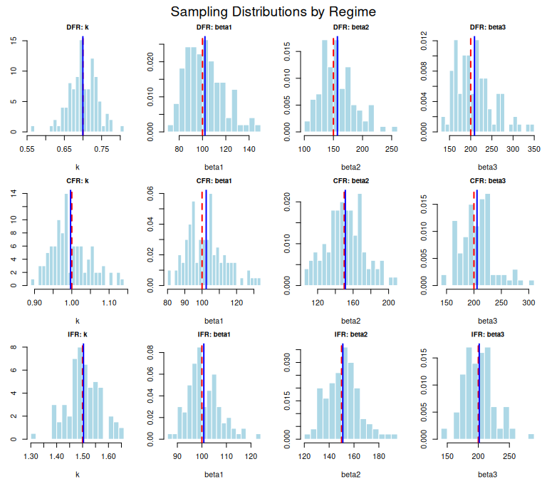 mtext("Sampling Distributions by Regime", outer = TRUE, cex = 1.2)
