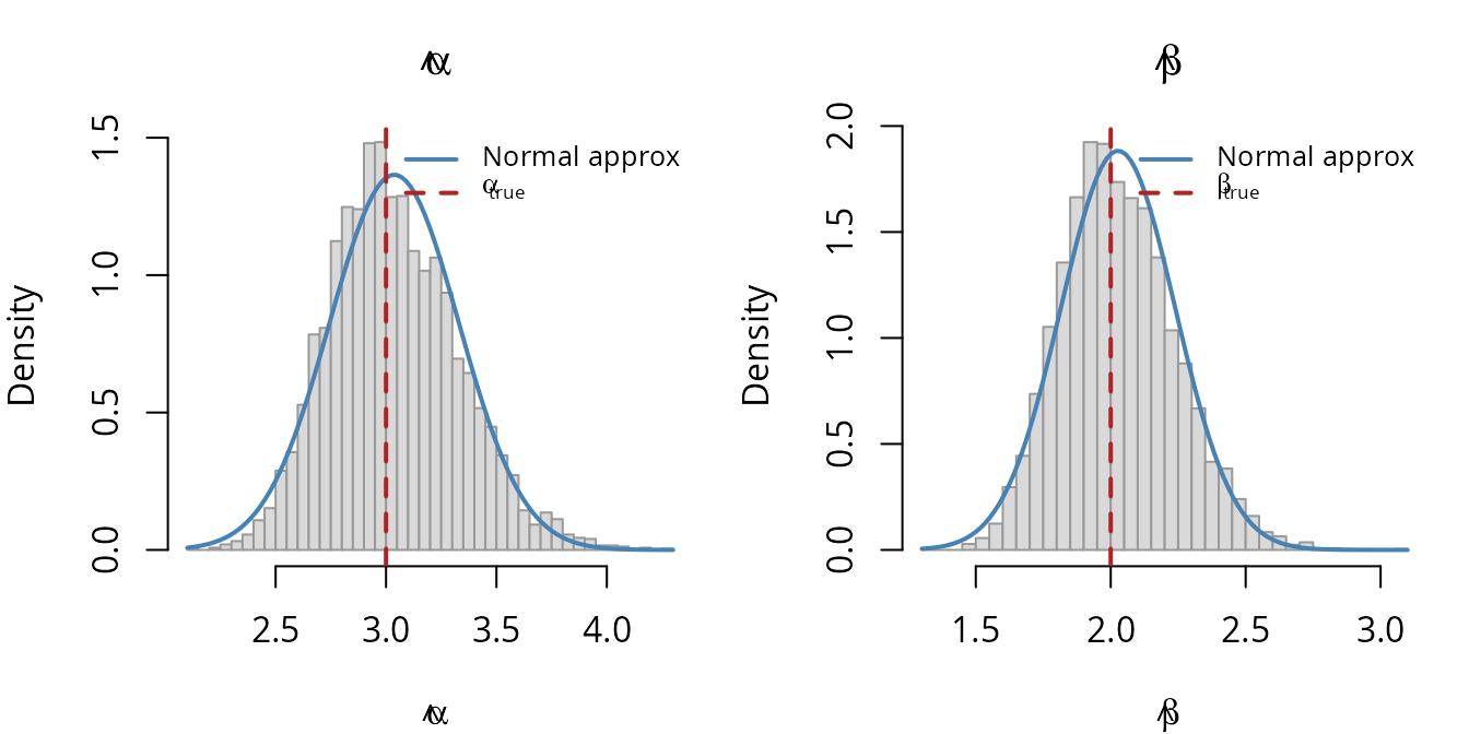alpha_hat <- theta_hat[1]; beta_hat <- theta_hat[2]